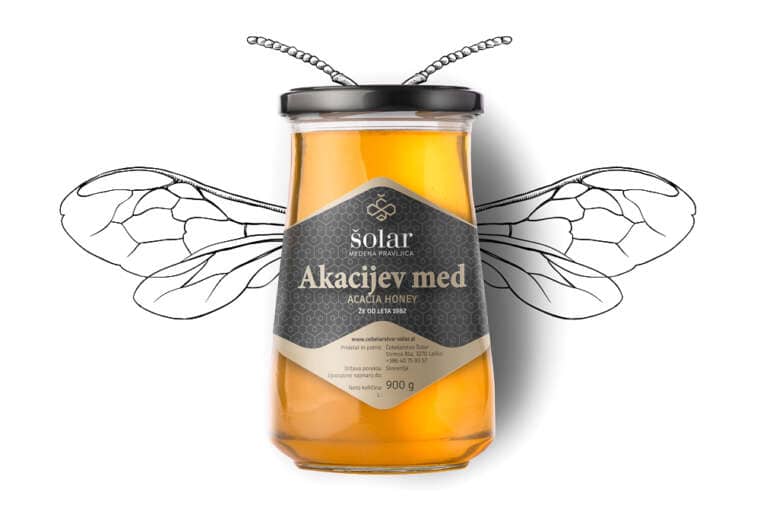 Naše čebele akacijev med skrbno nabirajo na dišečih cvetovih akacije, ki v času cvetenja privabljajo čebele s svojo nežno in prijetno aromo.