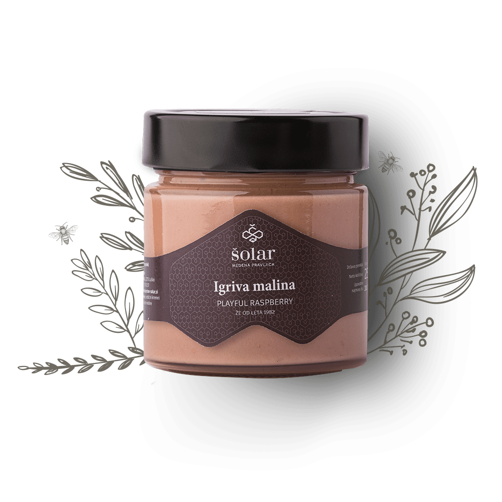 Igriva malina je mešanica kremnega medu in suhih malin, ki mu dajejo prijeten, osvežujoč sadni okus z rahlo kiselkasto noto. Mešanica navduši z nežno sladkostjo kremnega medu in aromo malin, ki popestri vsak grižljaj.